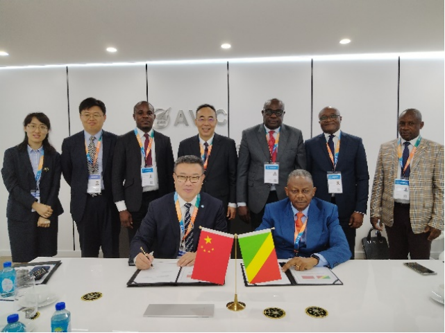 ▲中航国际与刚果(布)交通、民用航空及商船部签署了一架“新舟”60飞机的维修维护协议