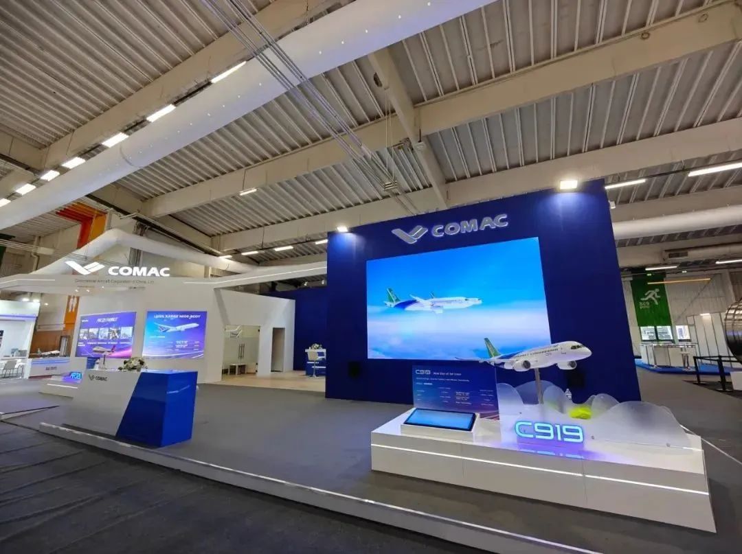 本届巴黎航展,中国商飞展出了两款主力产品——C919大型客机和ARJ21支线飞机的1:20模型。航展期间,中国商飞将针对潜在客户集中开展产品推介活动,通过与更多客户的沟通交流,展示公司产品性能,助力海外市场开拓。
