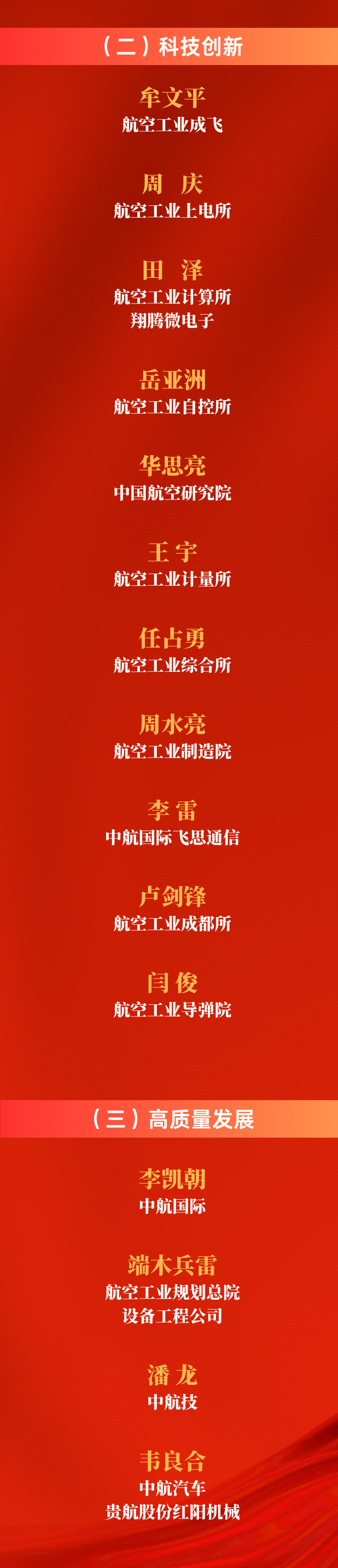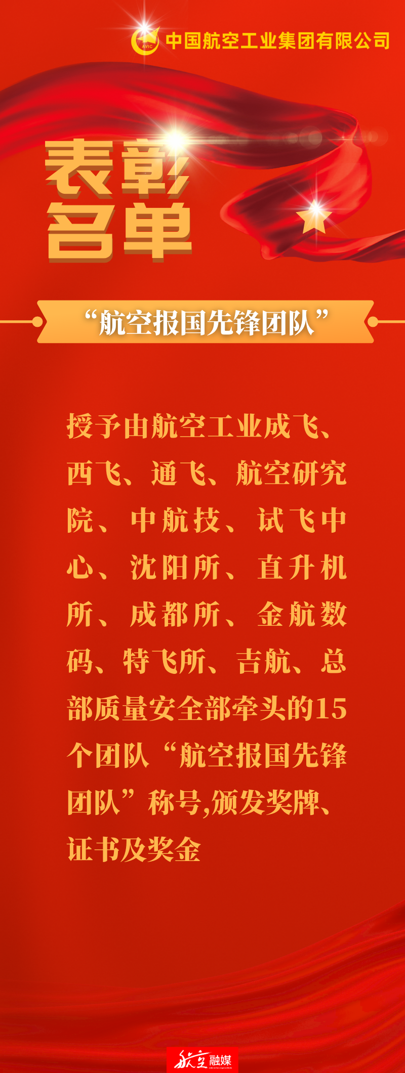 航空工业党组希望受表彰的个人和团队珍惜荣誉、再接再厉,继续发挥表率引领作用,推动发展新质战斗力,加快实现高水平科技自立自强,服务高质量发展,在全面建设新时代航空强国新征程中再创佳绩、再立新功。