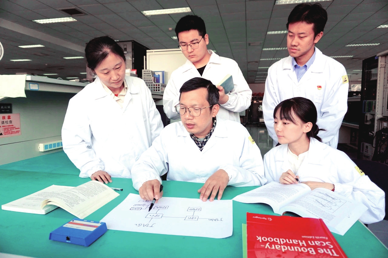 团队成员因共同的目标而聚,但在开发初期,大家还是困惑于如何创新,如何突破难点。团队负责人冯春安慰充满干劲却没有头绪的年轻成员:“创新不需要天才,需要的是找出改进办法,我和大家一起解决问题。"在一次次讨论中,大家集思广益,发挥优势找出改进方法,通过合理分工,使低效推进走向高效协同。在黄开臣的带领下,蔡燕等团队成员大胆突破传统维修思维,引进并自主开发了BSI边界扫描技术,有效解决了维修定位的难题,提高了维修精准度。他们的努力极大提升了专业水平和精神意志,克服了行业内缺乏成熟经验的困难。经过几个月的攻坚克难,团队通过自主开发的软件实现了模块自动烧写,极大提高了效率,减少了人工干预。边界扫描技术的应用使故障定位更加快捷精准,效率平均提升了5倍。