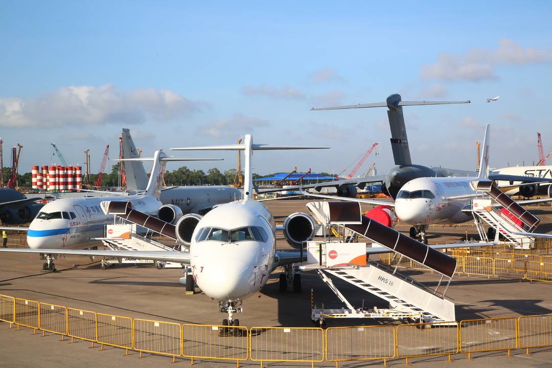 2月20日,新加坡航展在樟宜会展中心拉开帷幕,2架C919飞机和3架ARJ21飞机首次亮相,并通过馆内模型展览、室外静态展示和飞行表演等多种方式,向公众呈现中国商用飞机发展的阶段性成果。
