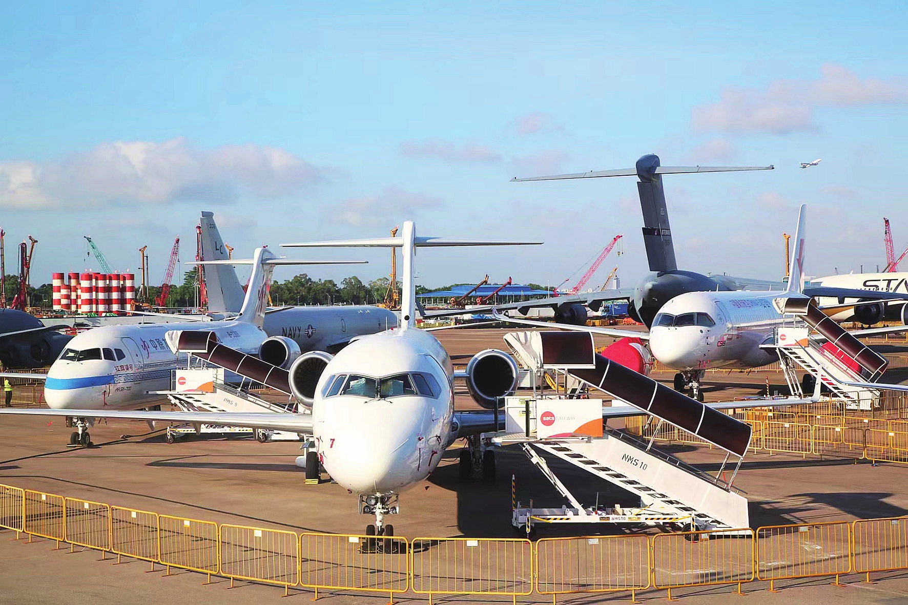 当地时间2月20日,新加坡航展在樟宜会展中心拉开帷幕,2架C919飞机和3架ARJ21飞机首次亮相,并通过馆内模型展览、室外静态展示和飞行表演等多种方式,向公众呈现中国商用飞机发展的阶段性成果。