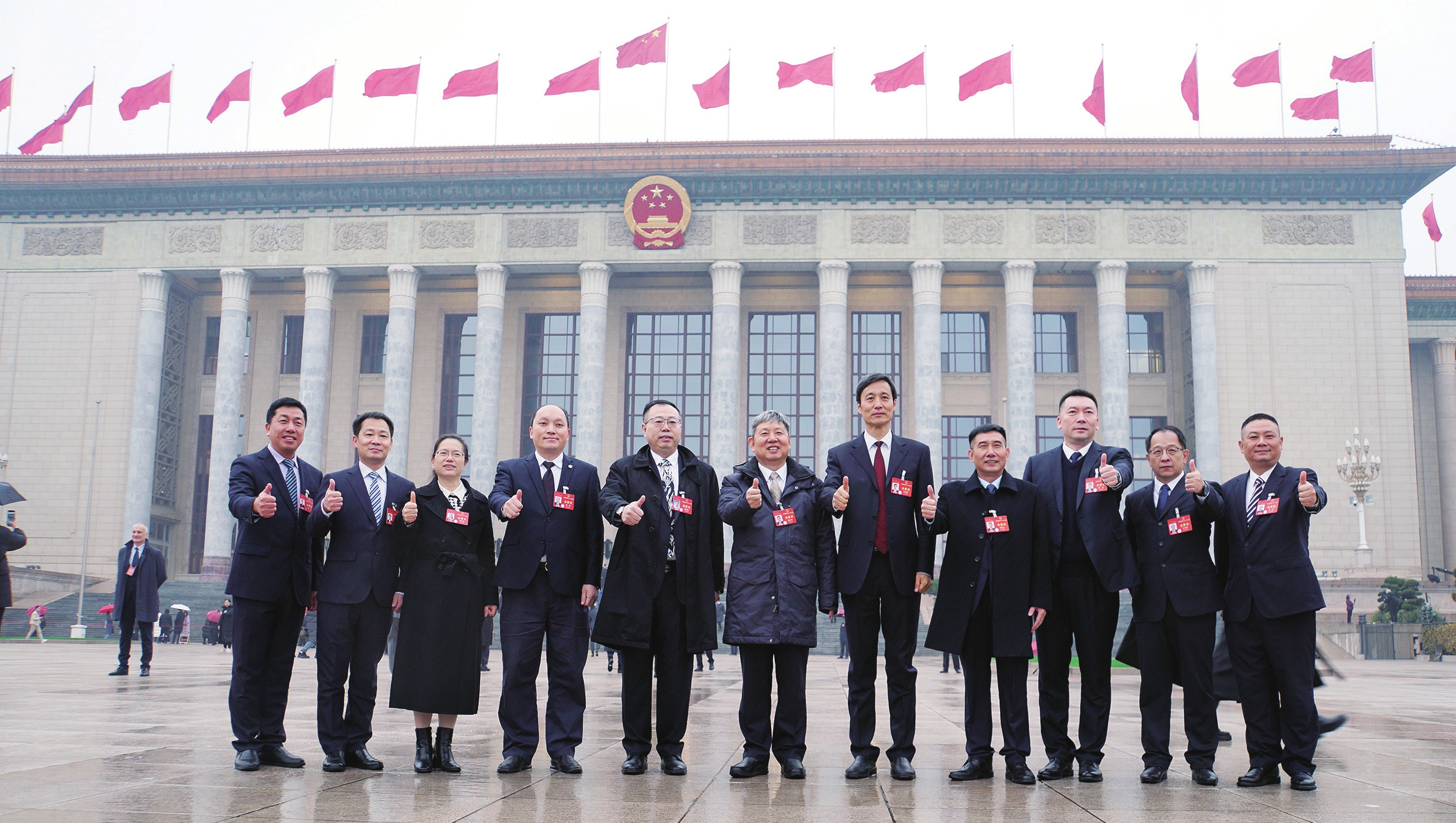 3月5日上午,第十四届全国人民代表大会第二次会议在北京人民大会堂开幕。今年是本届航空工业全国人大代表履职的第二年。经过一年的沉淀与思考,来自航空工业的11名全国人大代表带着扎实调研收集的民情民意和积极履职酝酿的建议提案向大会报到,紧紧围绕加强国家试验试飞资源统筹建设、推进有人无人商用融合飞行、加大技能人才扶持政策、探索产业工人培养路径等各界关注、百姓关切的热点话题建言献策。(从左到右分别是:赵平、孟祥忠、田俊霞、符德、纪瑞东、樊会涛、王海峰、郭泽义、蔡猛、王向明、刘忠)