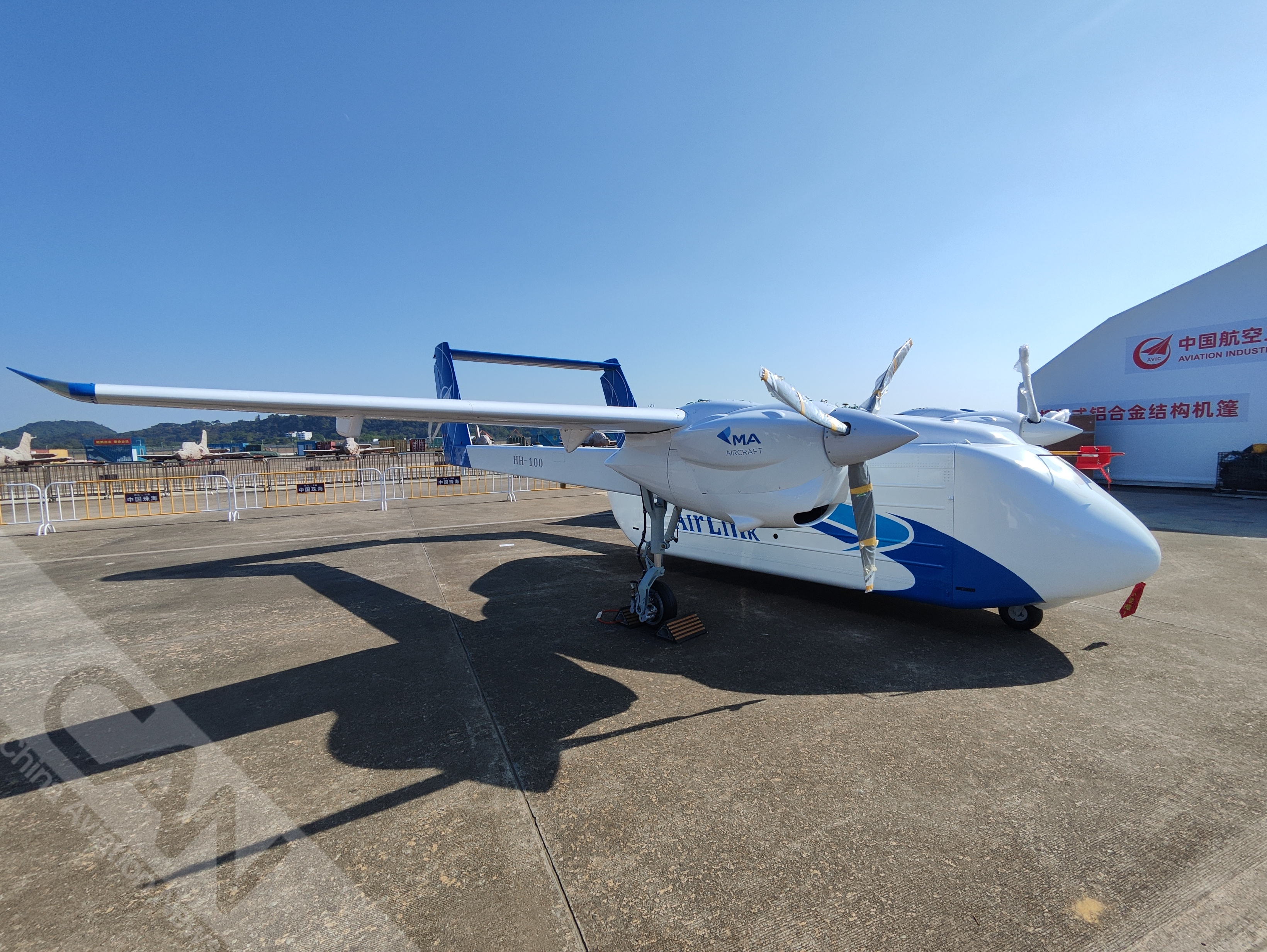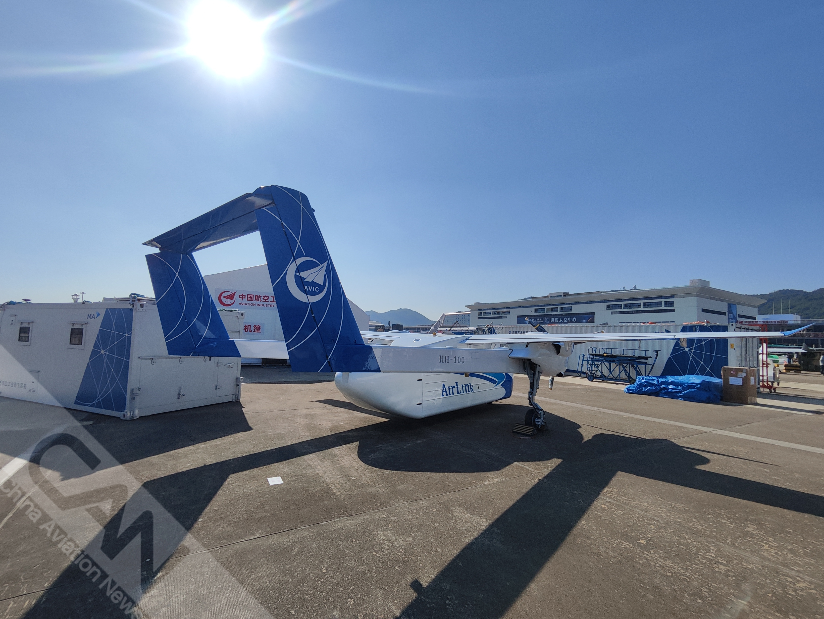 11月8日,HH-100航空商用无人运输系统在2024中国航展。HH-100是一款中低空、模块化、多用途无人运输机系统,可以在复杂气象条件下执行飞行任务。(摄影:王静宇)