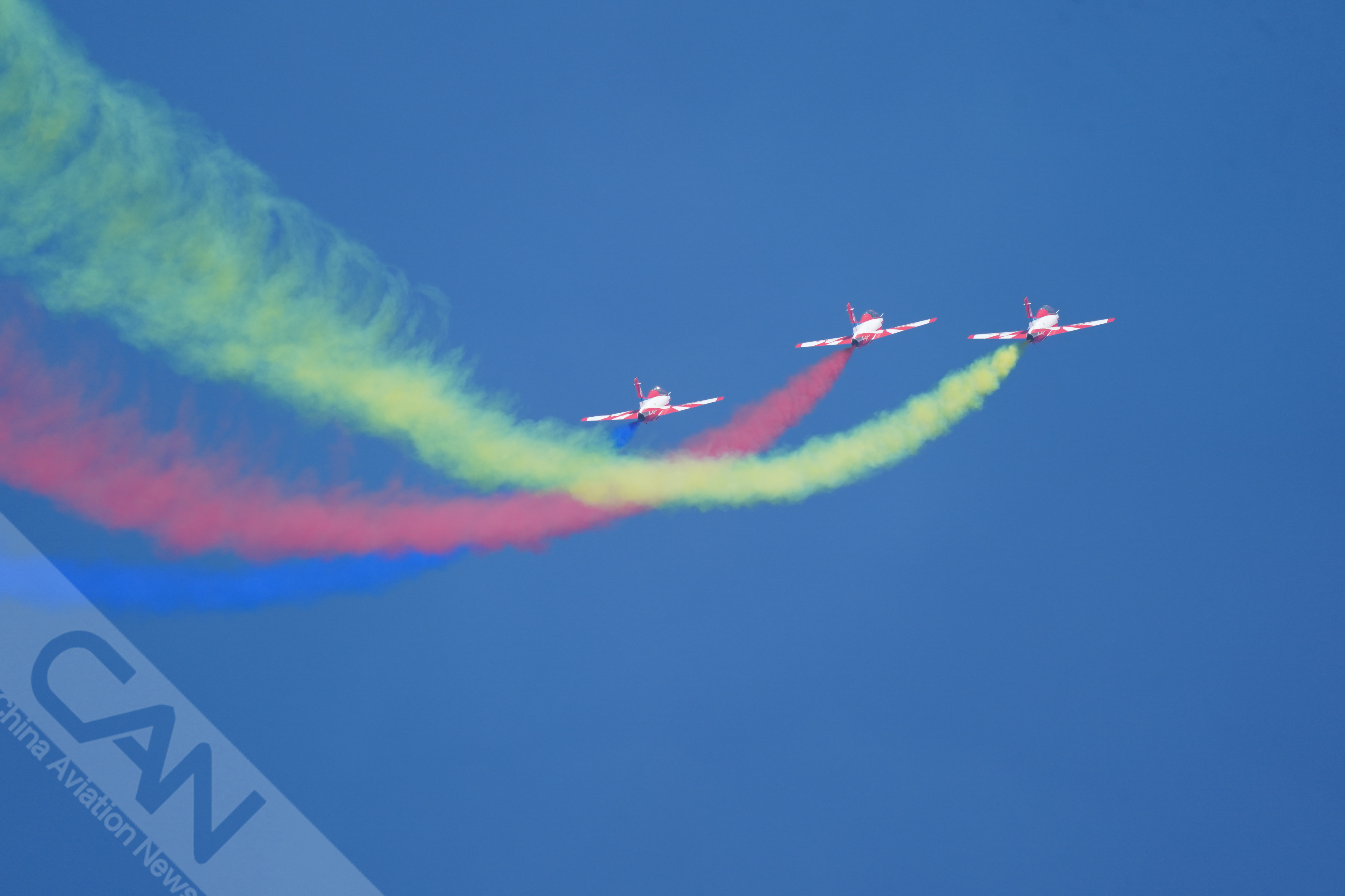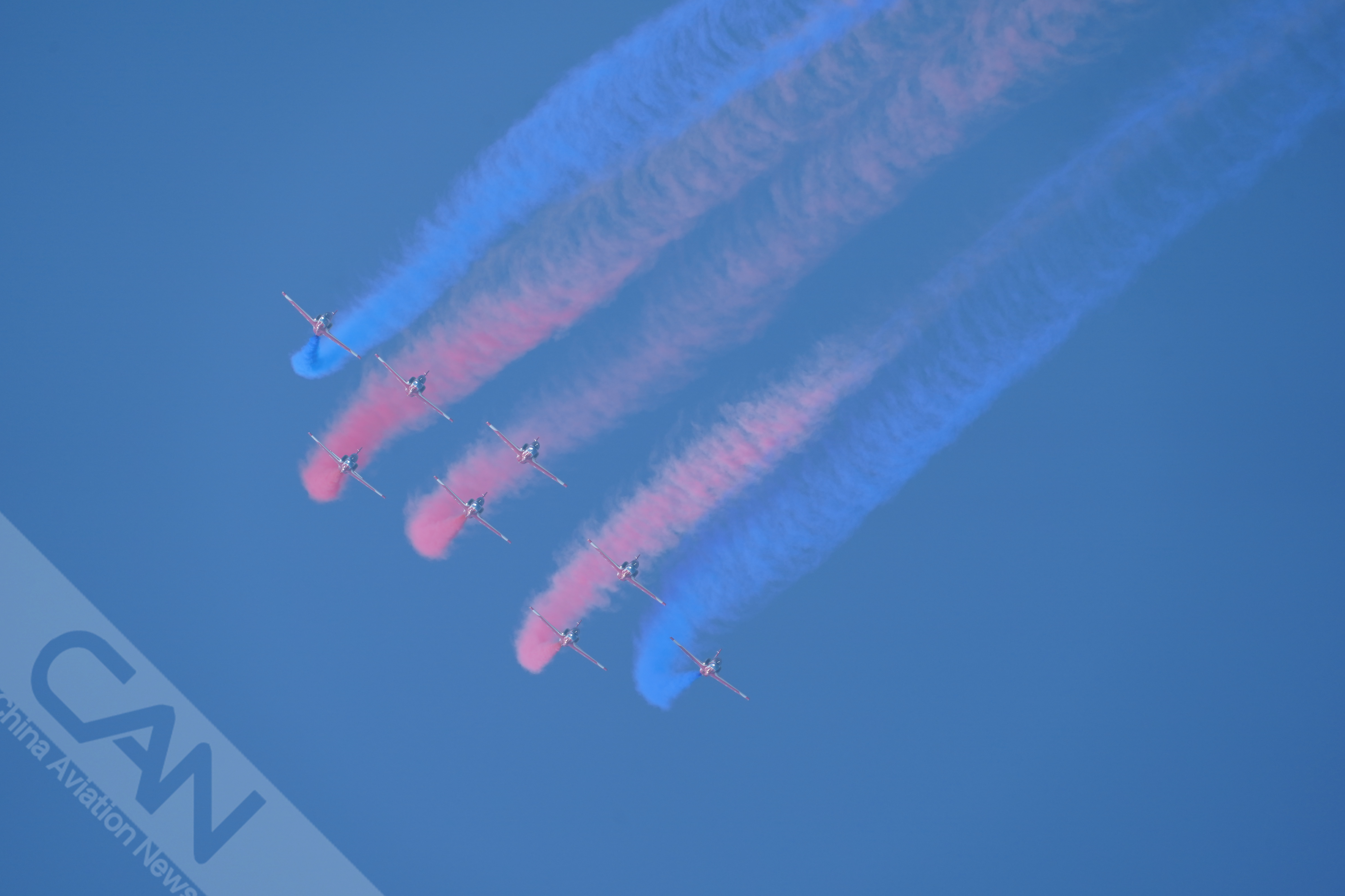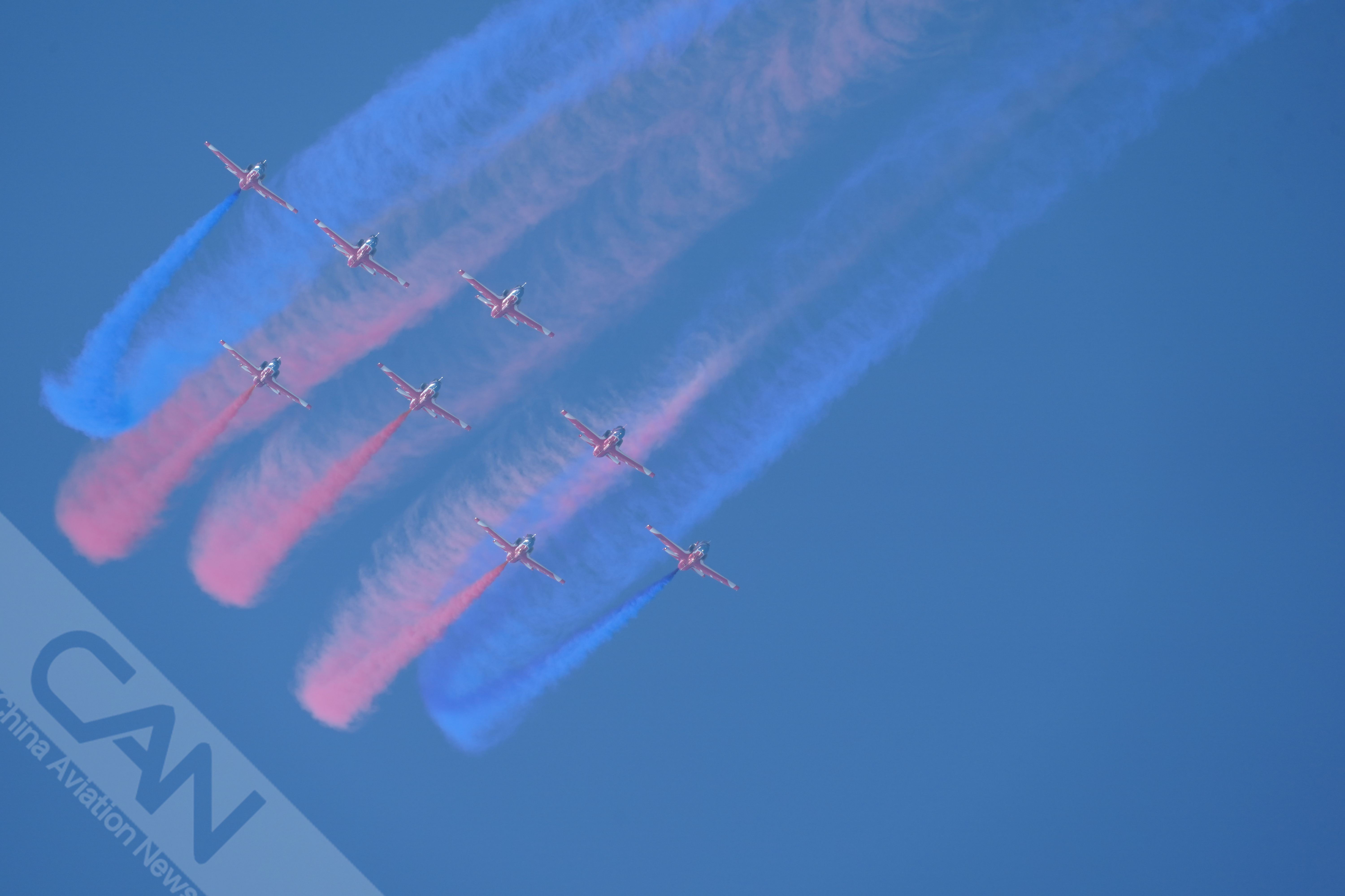 11月8日,“红鹰”飞行表演队进行适应性训练。据悉,“红鹰”飞行表演队为本届航展设计了20多个特技飞行动作,部分进行优化更新,将为观众带来更多惊喜。(摄影:岳书华)