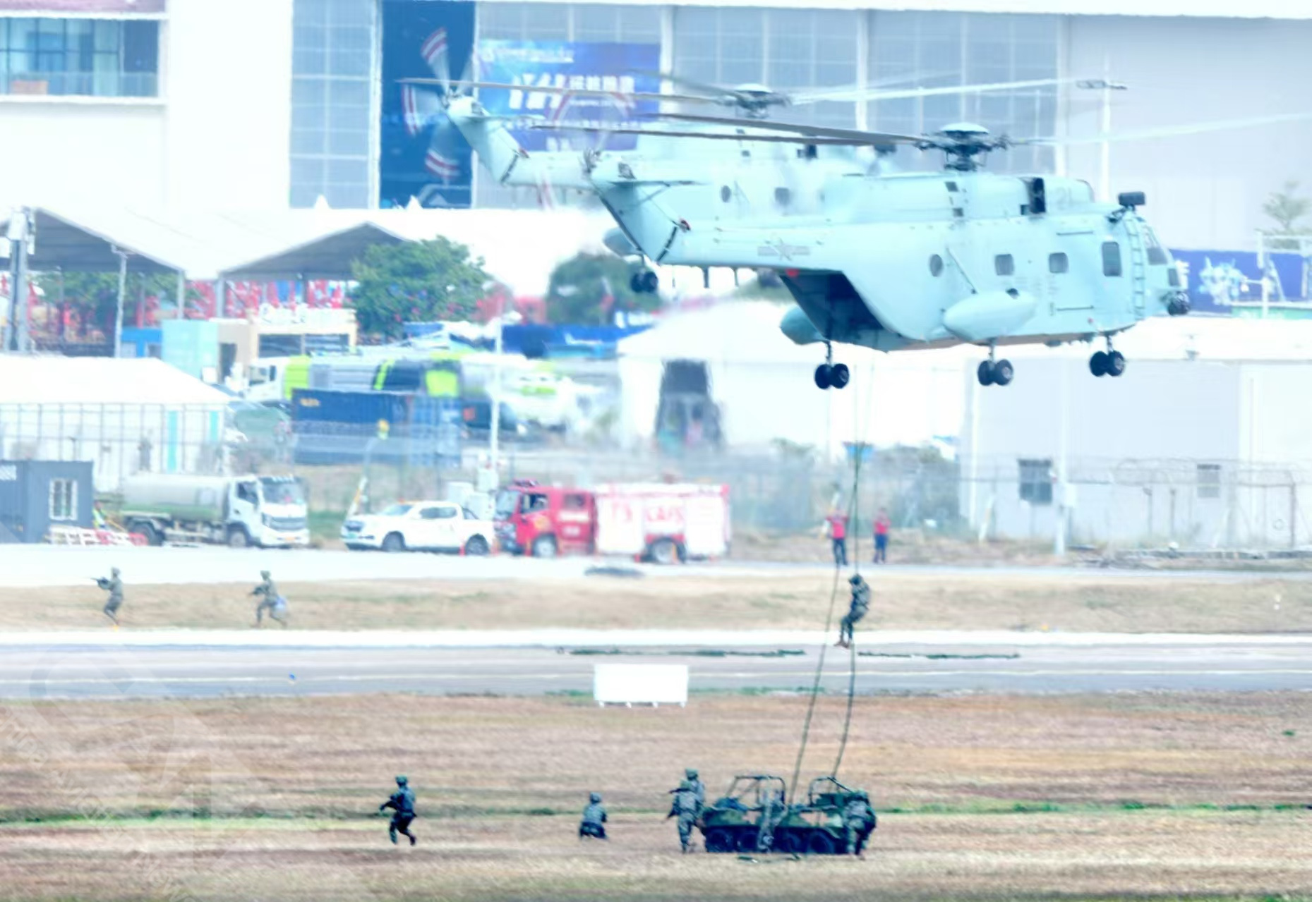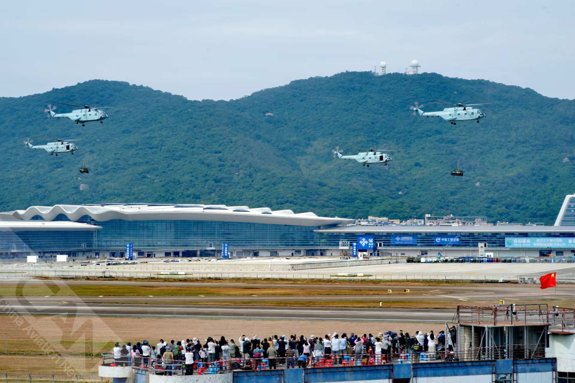 11月9日,海军直8直20飞抵珠海航展,直20舰载直升机搭载陆战队员进行突击训练。据了解,今年是海军第一次参加中国航展。(摄影:岳书华)