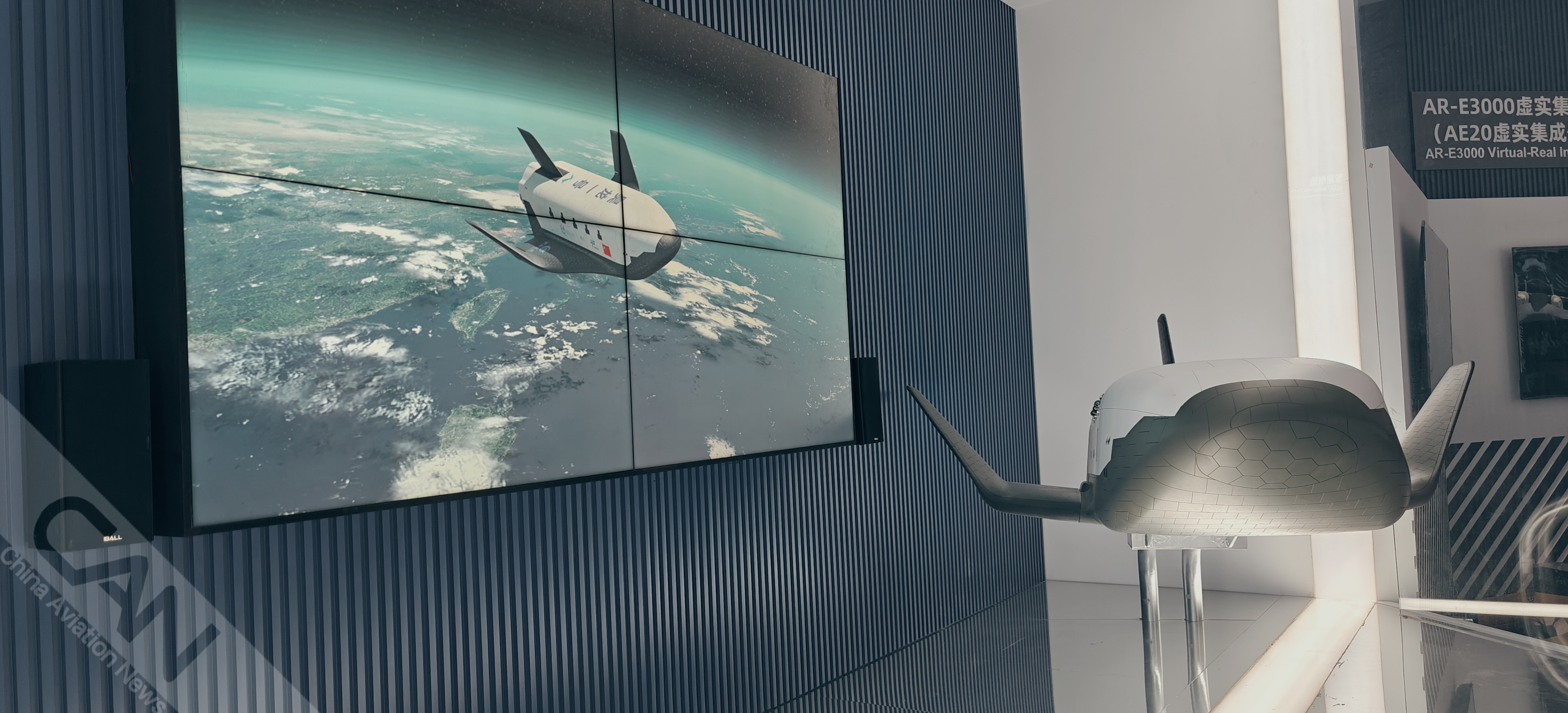p站视频 展台,“昊龙一号”航天飞机亮相。“昊龙一号”是一型可重复使用商业航天飞行器,用于开展低成本的空间站货物运输任务。(摄影:王兰)