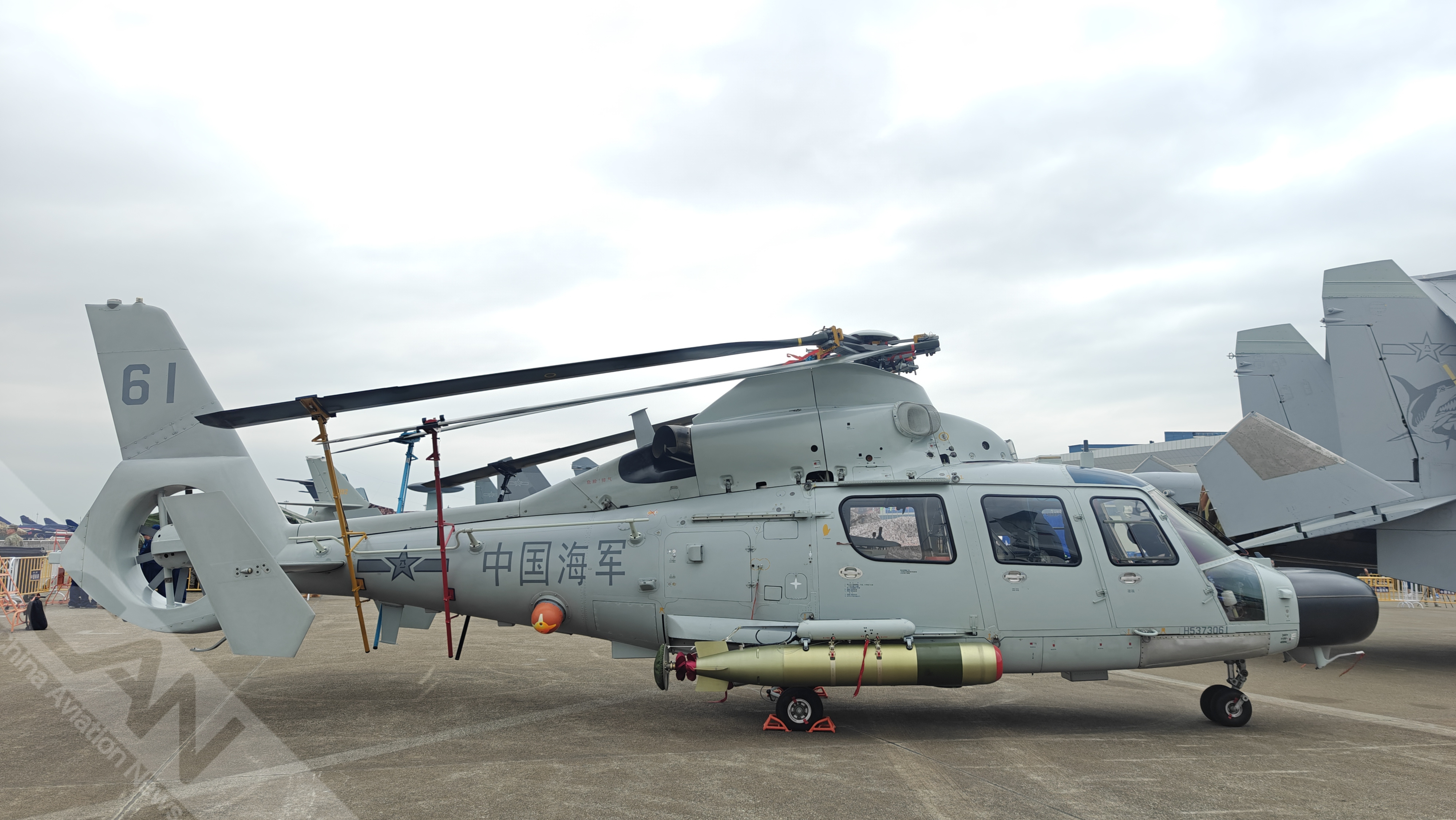 人民海军首次参加中国航展 点击大图看舰载型直9