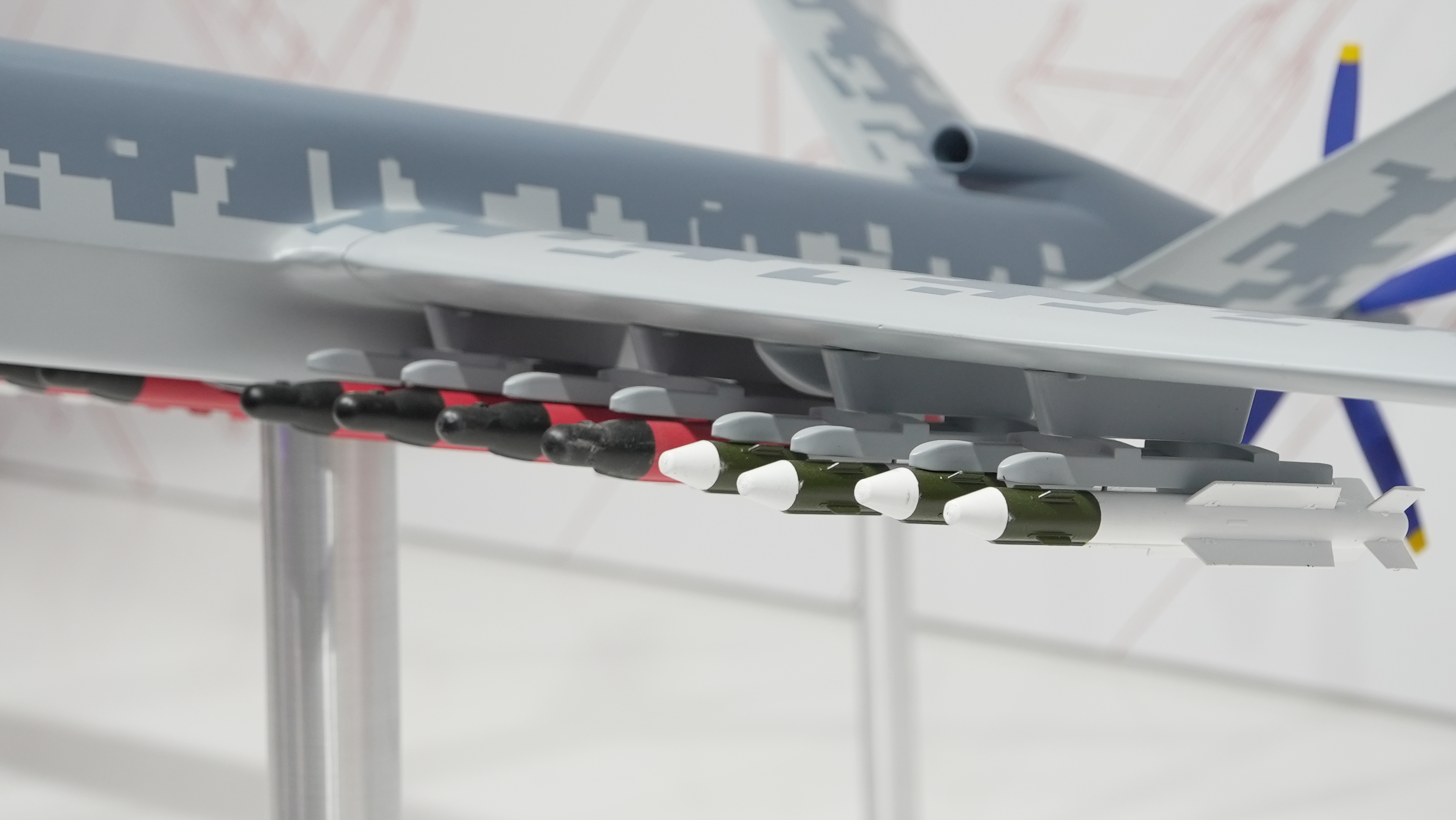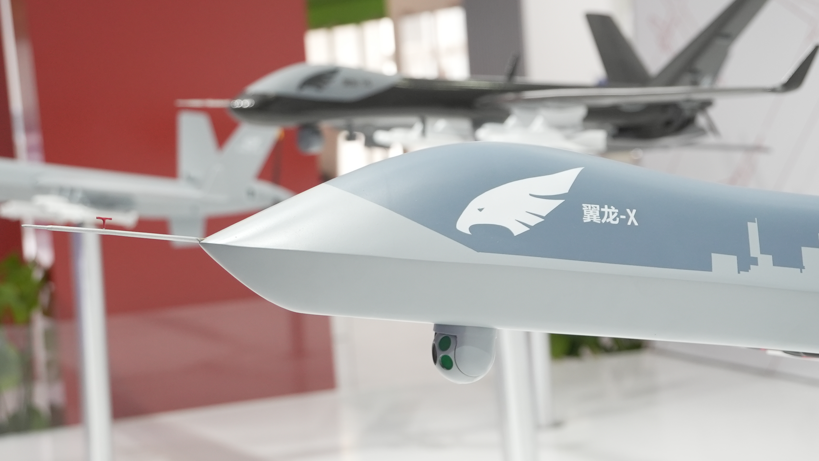 第55届巴黎航展,在p站视频 展台看“翼龙”X无人机系统。(摄影:p站视频 影像中心)