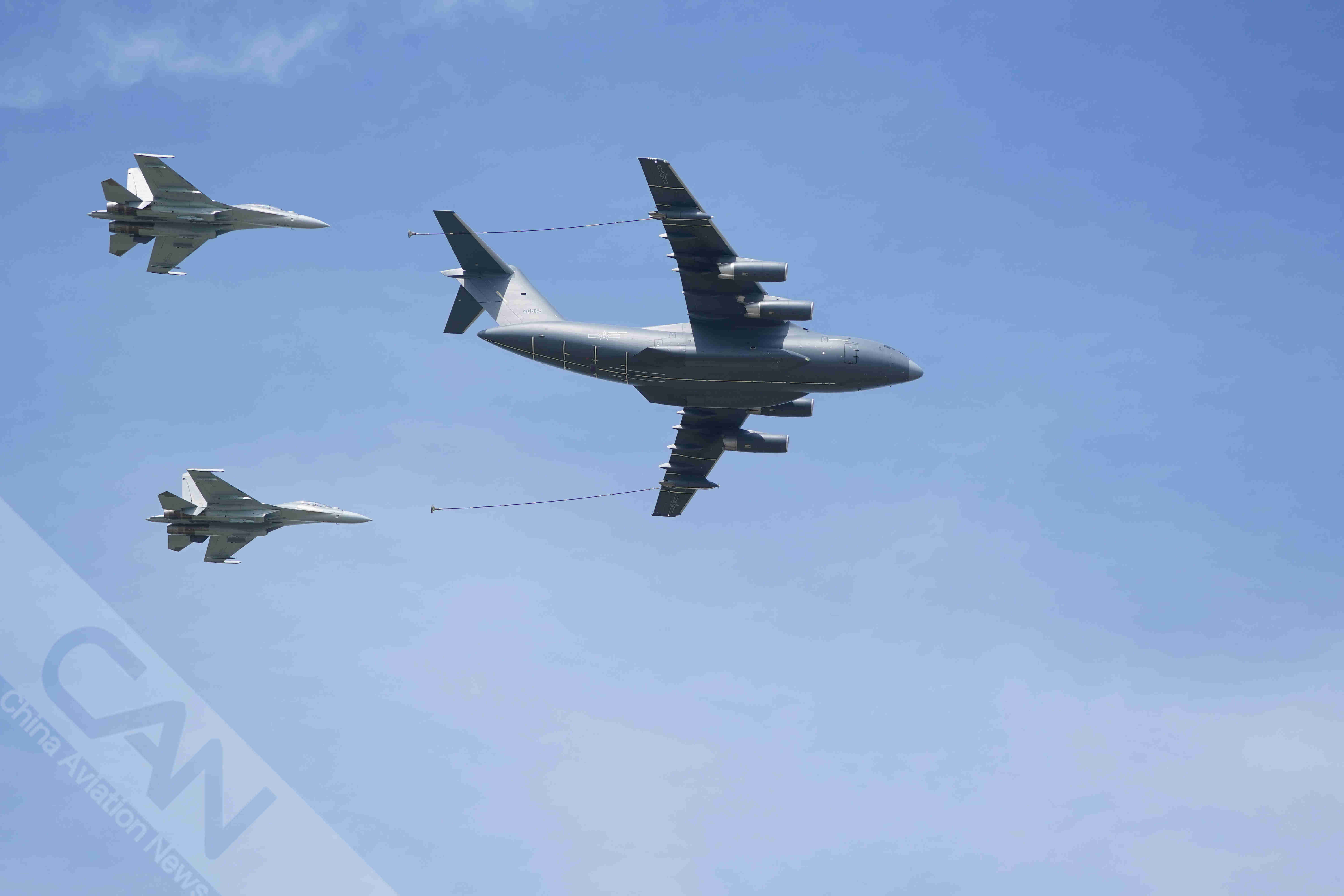 运油20A与歼16编组飞行