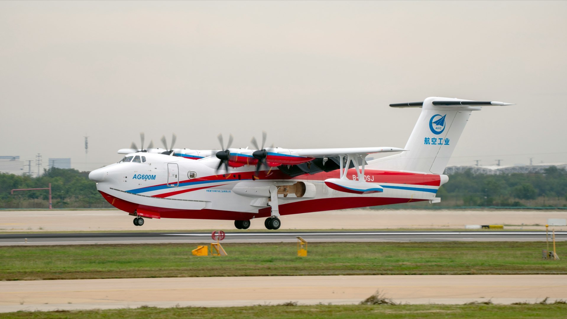 AG600M飞机已经抵达天津,将以全新的面貌亮相2025天津直博会。摄影:赵玮、许湘江