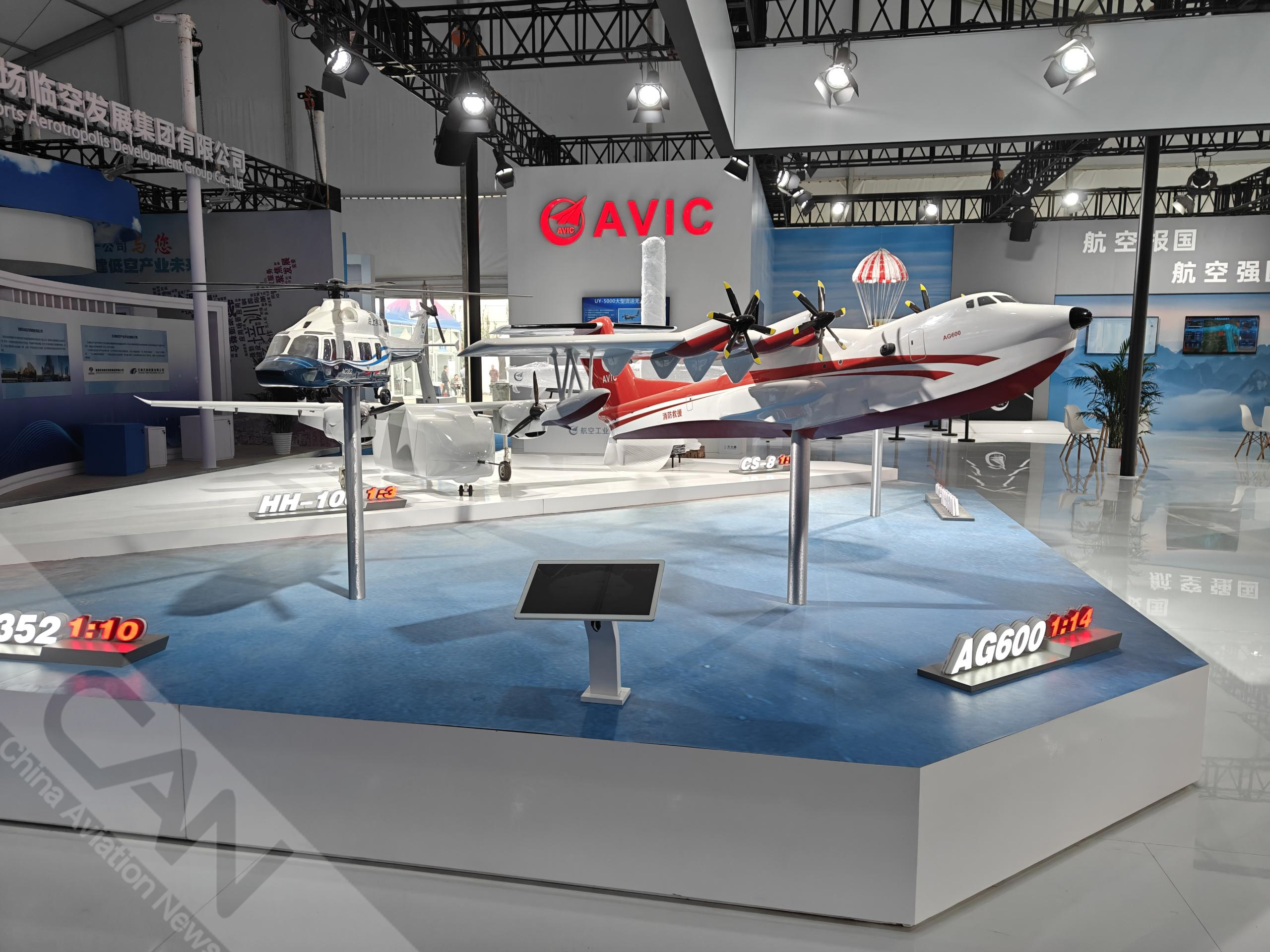 全球起飞重量最大的民用水陆两栖飞机AG600“鲲龙”在第七届天津直博会低空经济馆亮相。摄影:盖宇斌
