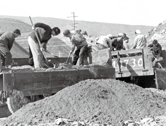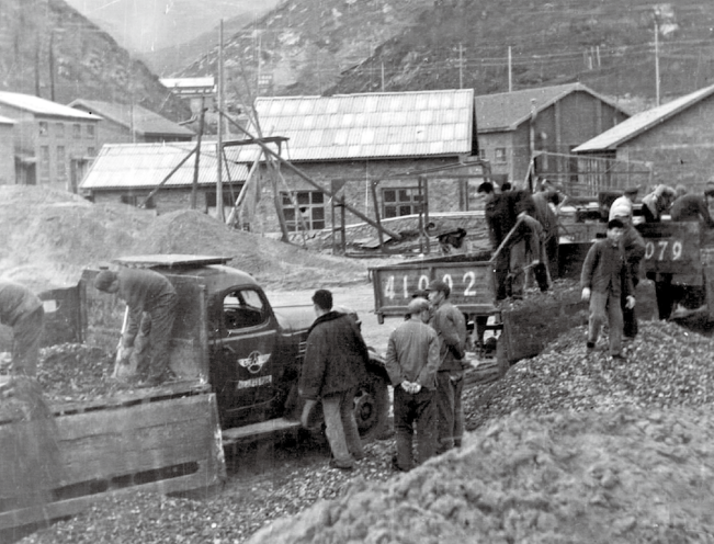 在那艰苦的创业时期,建设者们心中只有一个信念,就是“抢”——抢时间、抢速度、抢建设。为了这个“抢”字,建设者们就像一架永不停歇的机器,昼夜奋战在工地一线。基建施工需要大量的沙石,而这些沙石又要到离厂几十里远的汉江去挖运。为了保证进度,专门安排几个人在汉江负责挖沙、筛沙,为了防止被洪水冲走,还要将沙石倒运到高处。他们吃住在汉江堤畔,运沙的车辆一到,他们立即你争我抢地爬上汽车,抓紧装沙。不管是白天还是黑夜,也不管是烈日炎炎还是狂风暴雨,他们晴天一身汗,雨天一身泥;刮风当电扇,下雨当流汗;抢晴天,战雨天;为了早日建设好“三线”,他们拼命奋战着,坚守着。
