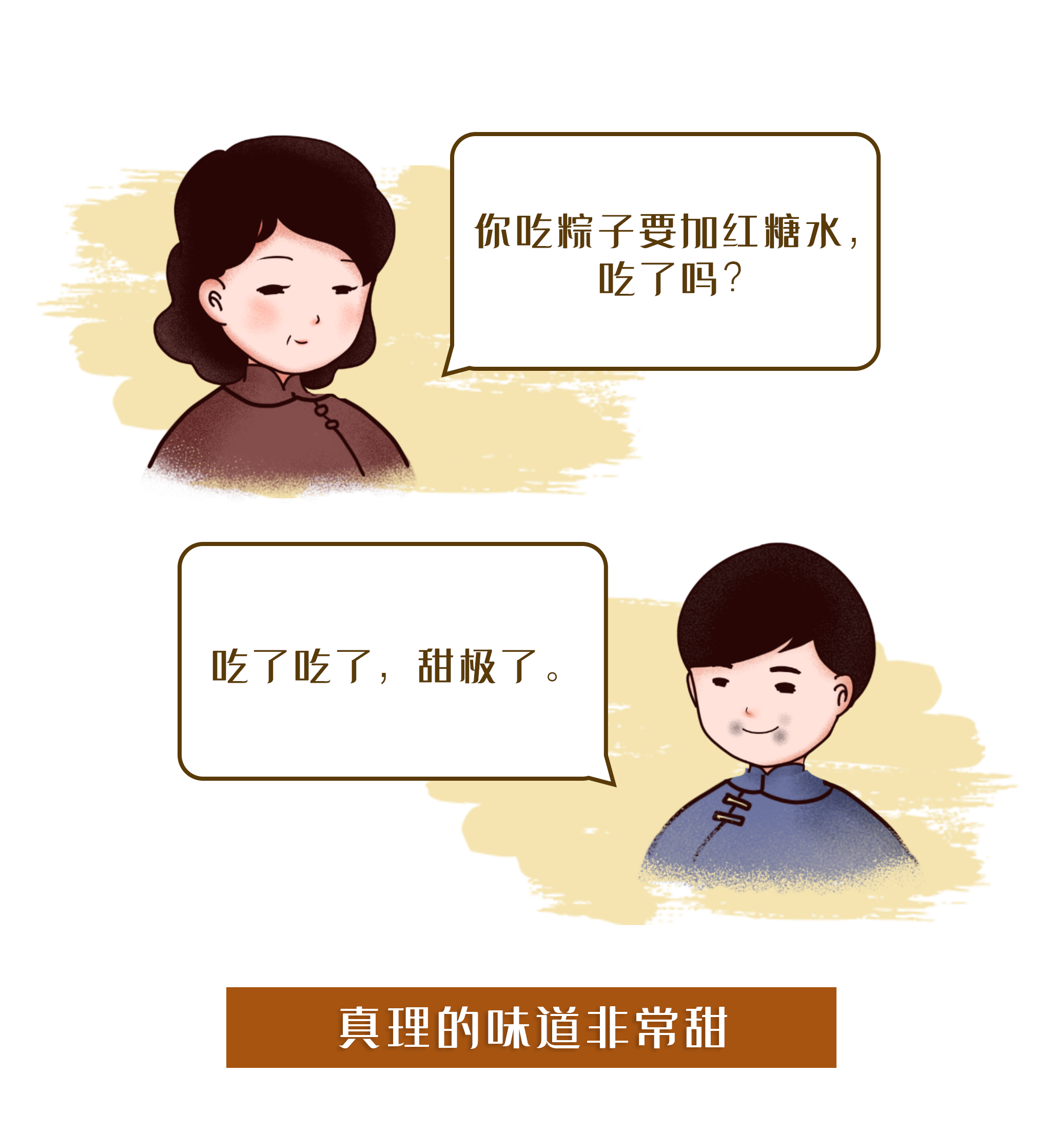 一天,一个小伙子在家里奋笔疾书,妈妈在外面喊着说:“你吃粽子要加红糖水,吃了吗?”他说:“吃了吃了,甜极了。”老太太进门一看,这个小伙子埋头写书,嘴上全是黑墨水。结果吃错了,他旁边一碗红糖水没喝,却把那个墨水给喝了,而他浑然不觉,还说,“可甜了可甜了”。这人是谁呢?就是陈望道,他当时在浙江义乌的家里,就是写这本书。于是由此就说了一句话:真理的味道非常甜。